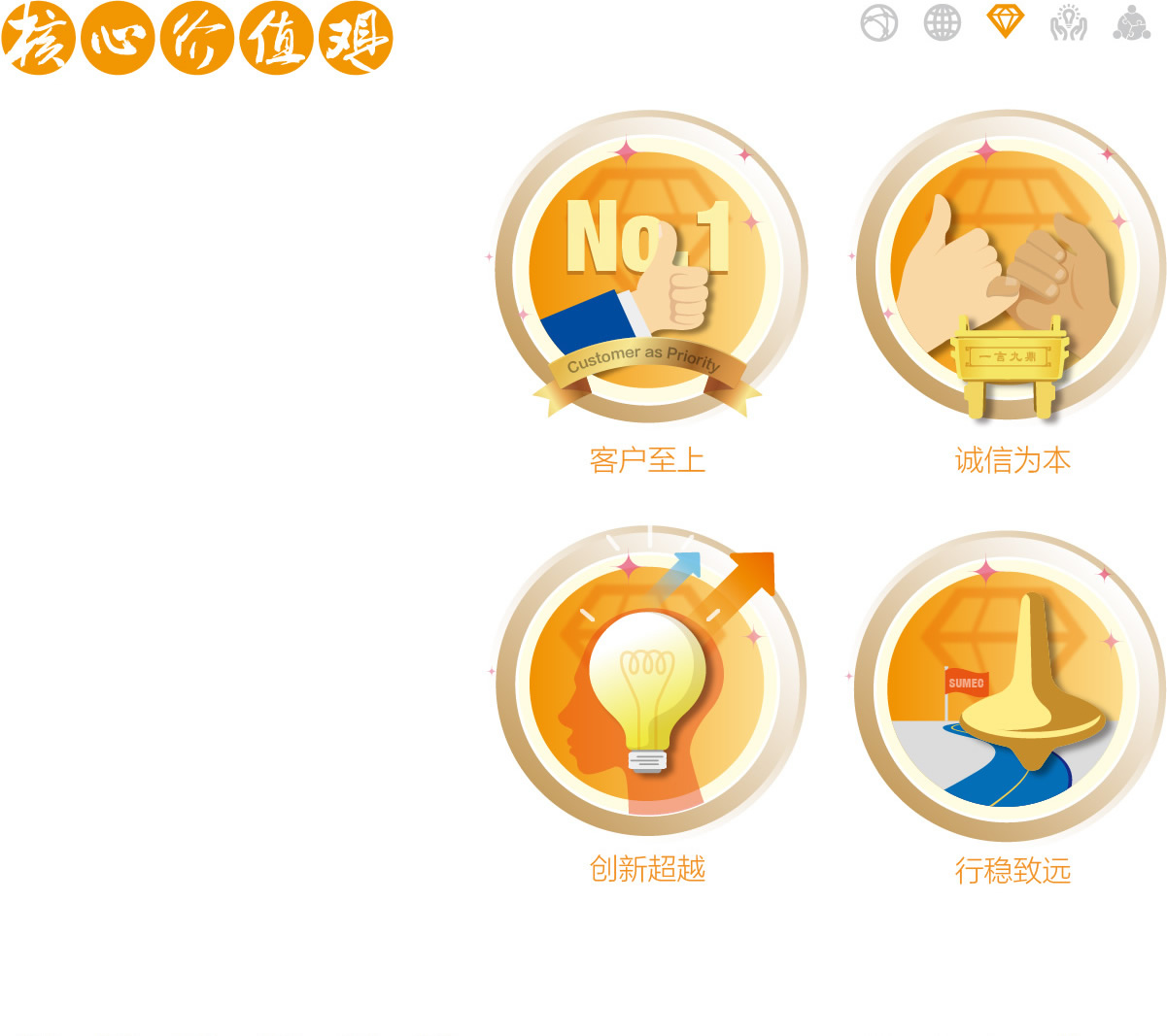 核心价值观是实现愿景和使命必须坚持的原则,是指导我们行为的价值标准。它是企业文化的基石,明确了我们的处事底线,博天堂918浓缩了我们的历史经验,体现了我们的工作作风。